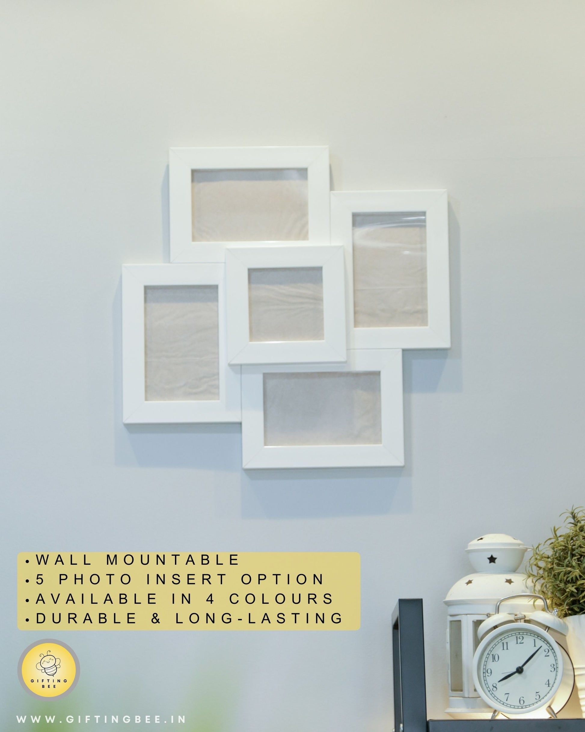 Transform your walls into a visual sanctuary with the 5 Frame Collage. The collage adds beauty, personality, and sentimental value to any room. Display your family photographs, travel adventures, or inspiring quotes that bring joy to your heart.