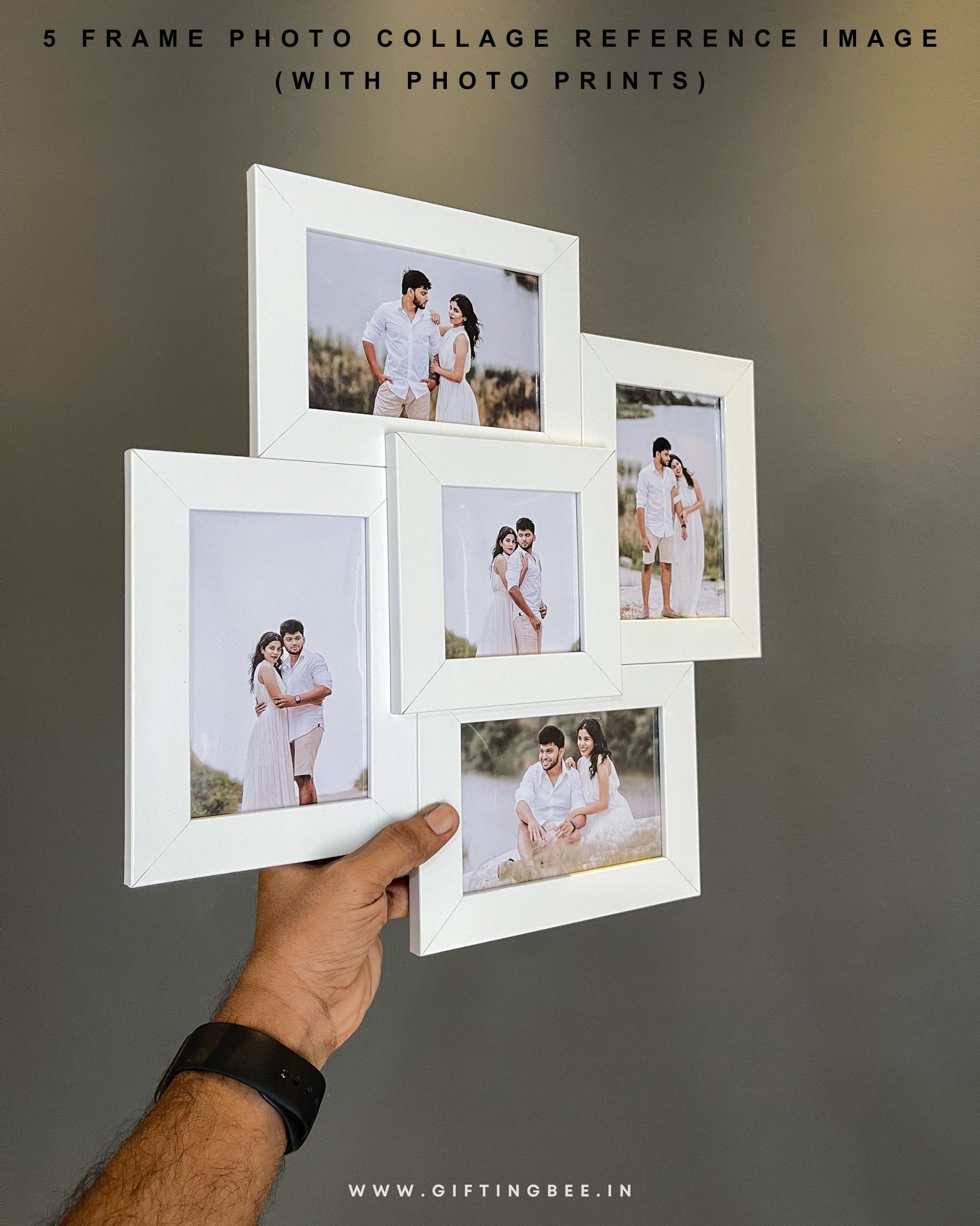 Crafted with meticulous care, our 5 Frame Collage boasts high-quality frames that are not only durable but also add a touch of elegance to your decor. The frames feature a sleek design that complements any wall style.