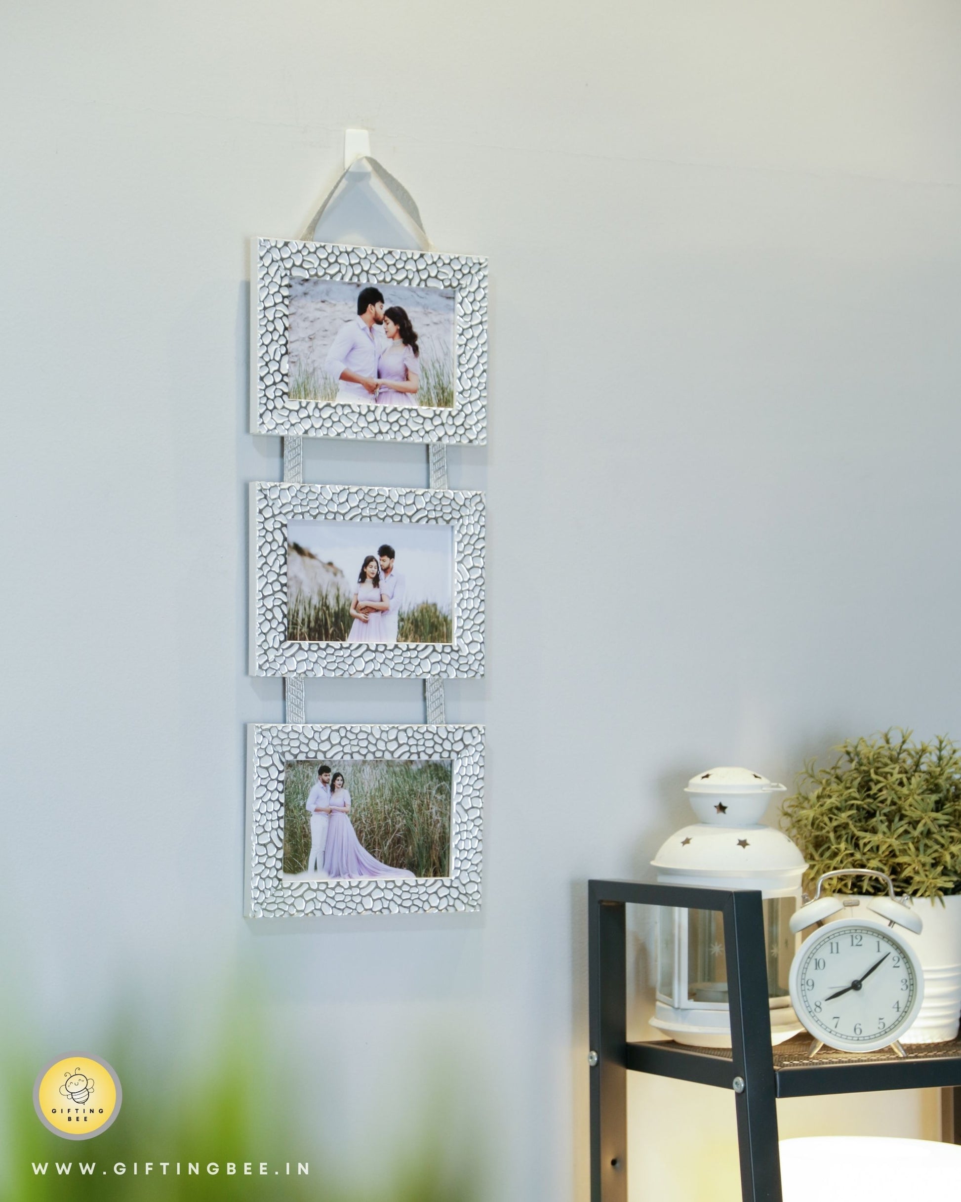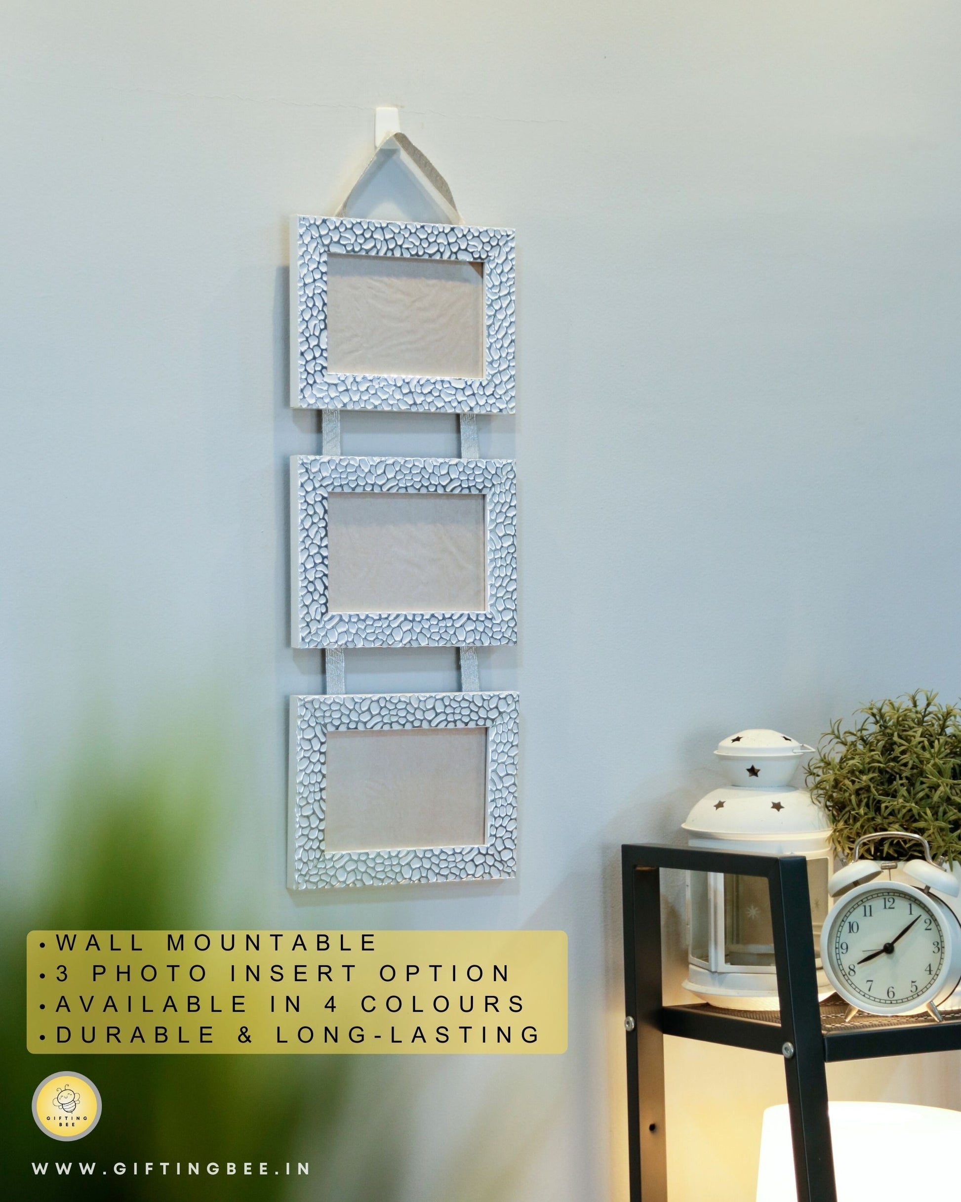 Elevate your home décor with Gifting Bee's captivating Hanging Frame Collage. This enchanting piece features three vertically aligned photo insert frames, inviting you to display your most cherished memories in a unique and stylish manner.