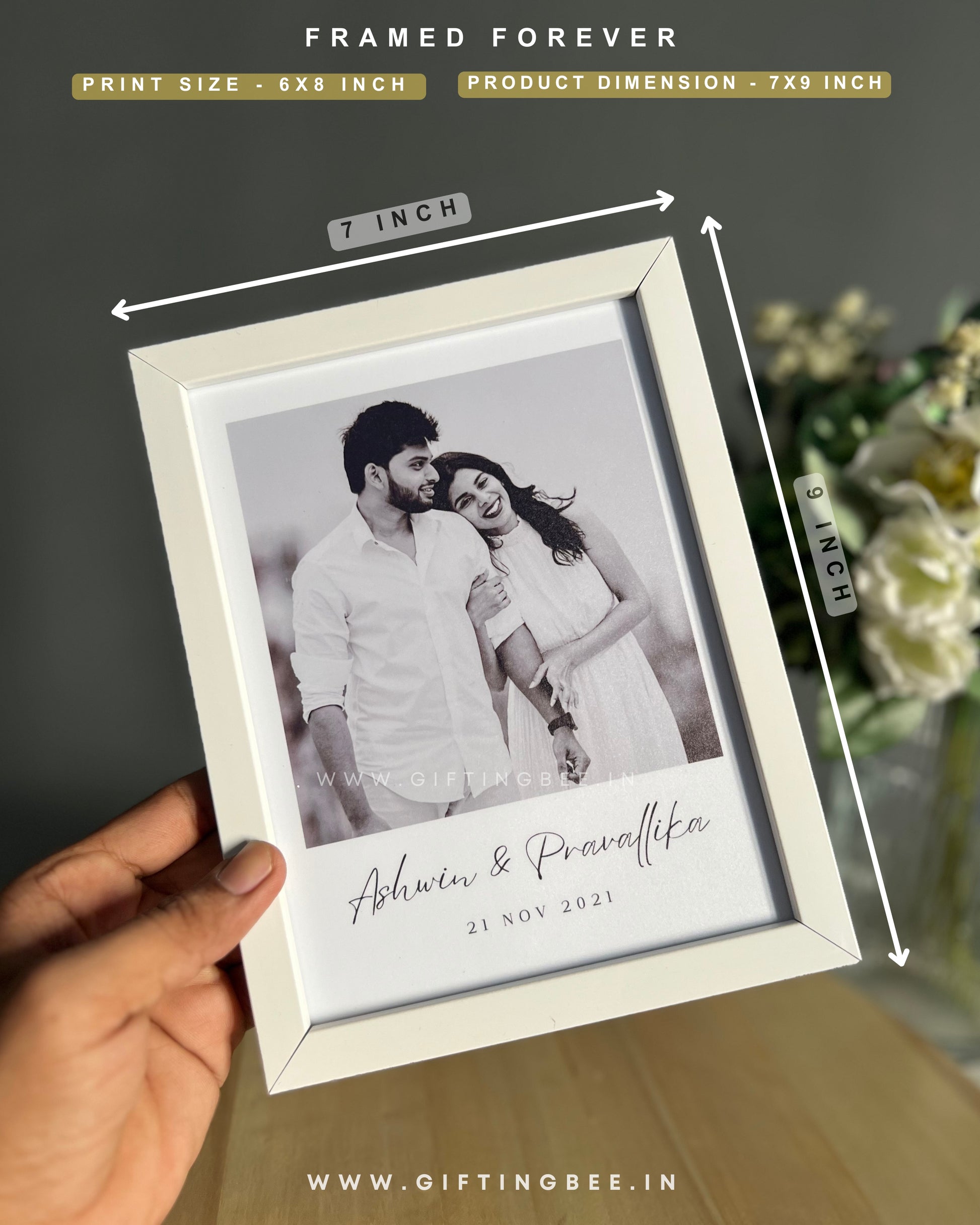 Personalised with your favorite photo, names, and a special date, this frame elegantly captures your timeless memories. Available in vibrant colour or classic black and white, it seamlessly matches any décor style, making it perfect for your desk, bedside table, or wall display.