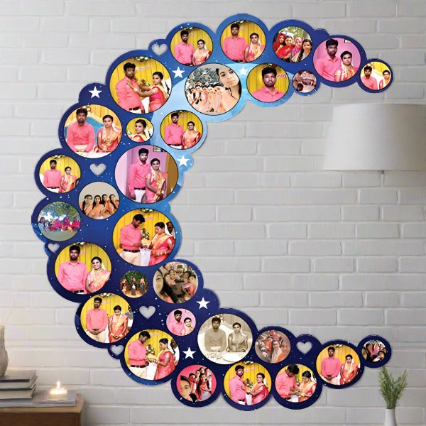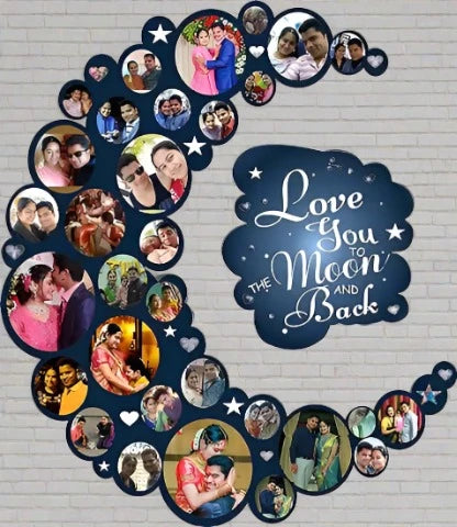 A personalized moon photo collage featuring various lunar phases and creative arrangements.