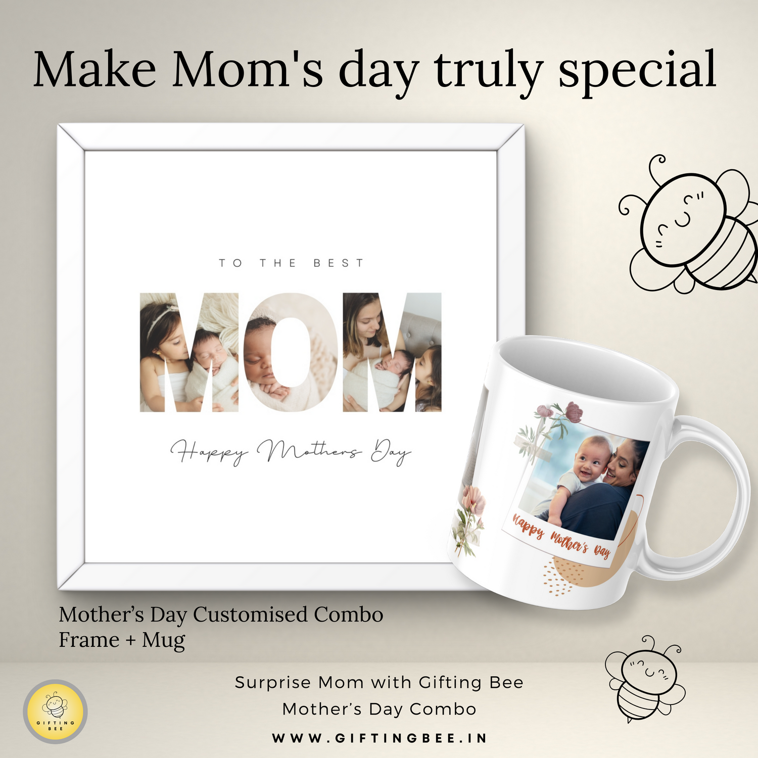 • Customisation: Upload cherished photos to be displayed in the unique "MOM" design and on Mug design.