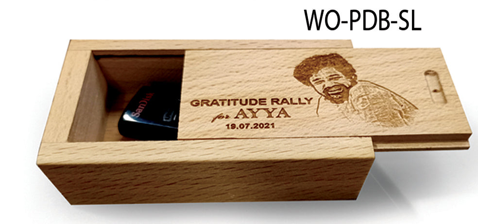 Engrave a special photo or heartfelt message on wooden pendrive box to create a unique and thoughtful gift for yourself or someone special.