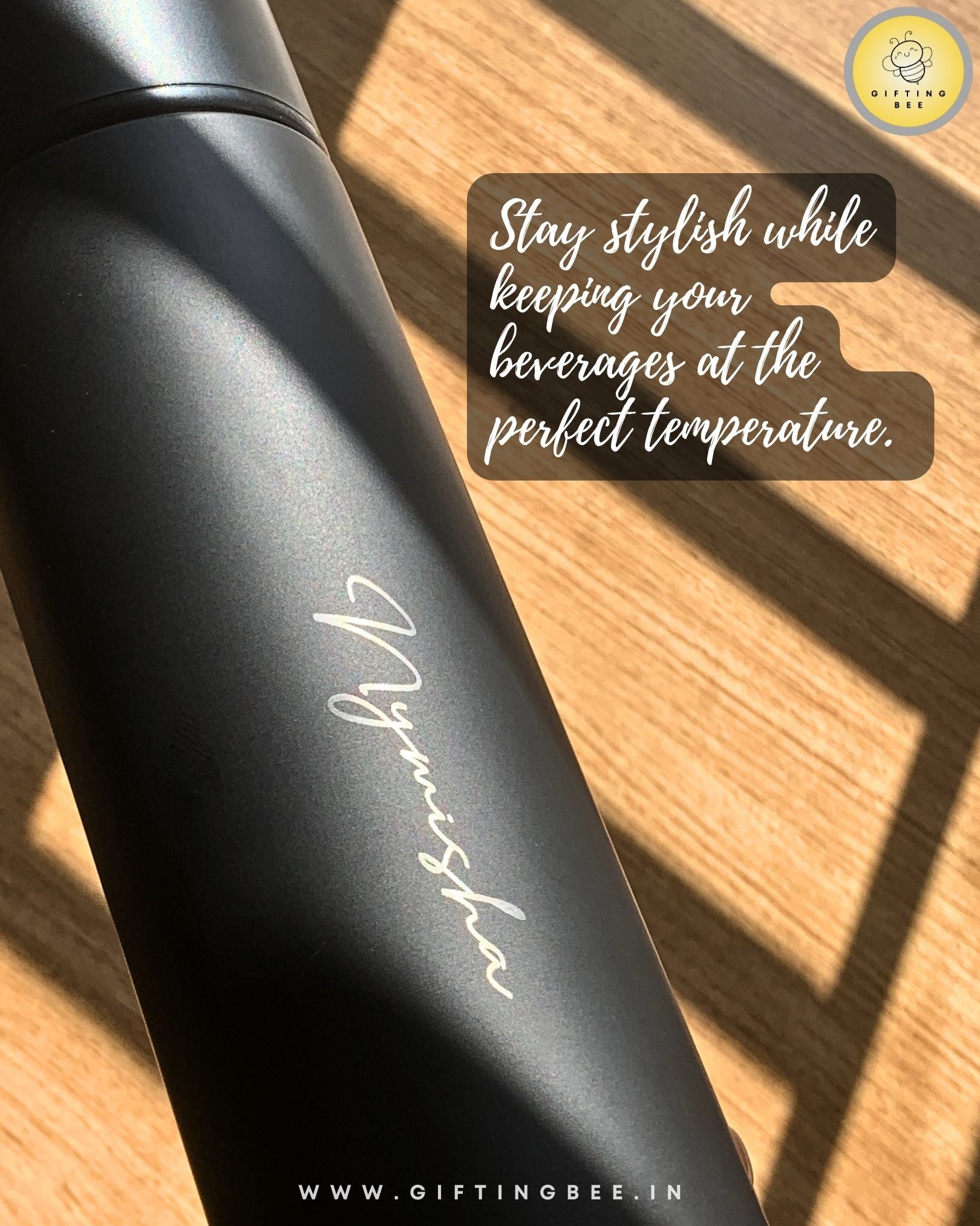 •The bottle is designed to keep beverages hot or cold for a long time. It is travel-friendly and features a stylish curvy font that is perfect for women and men. •Personalize this bottle by adding your name and enjoy your favourite beverage on the go. It is the perfect gift to give your loved ones on special occasions.