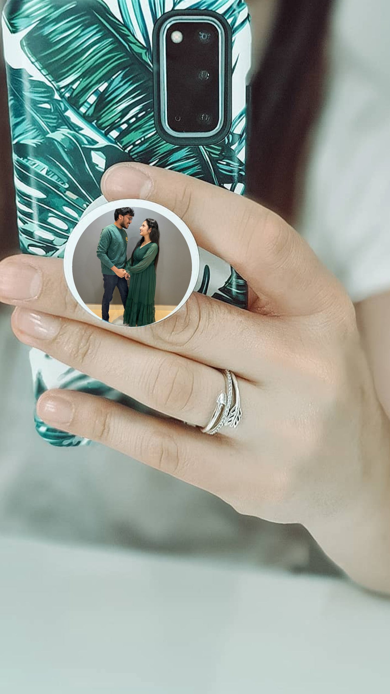 A personalized grip accessory for your phone, designed for comfortable handling and easy storage.