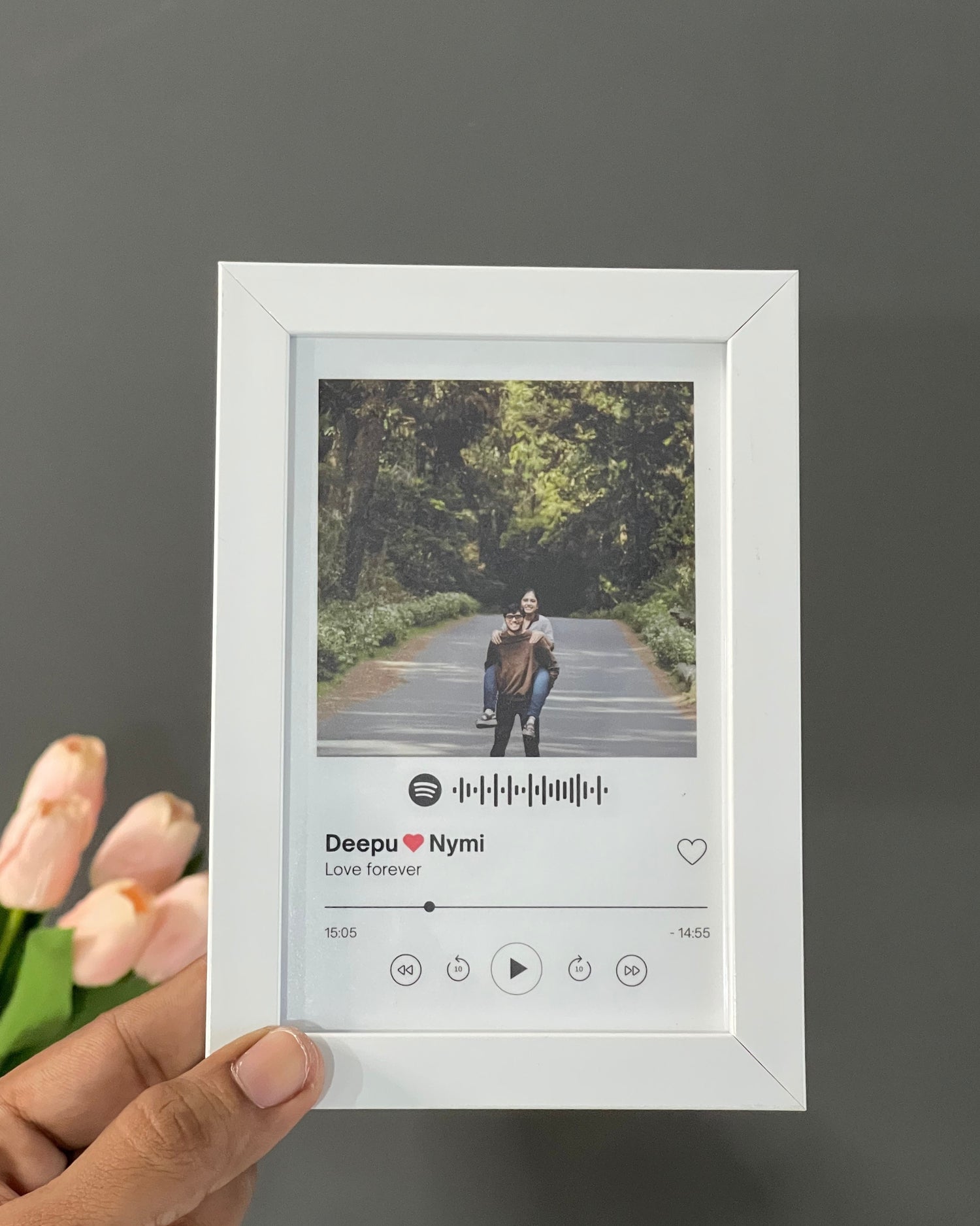 The Spotify Frame combines cherished memories, a heartfelt message, and a favourite song, creating a personalised, unforgettable gift for your loved ones.